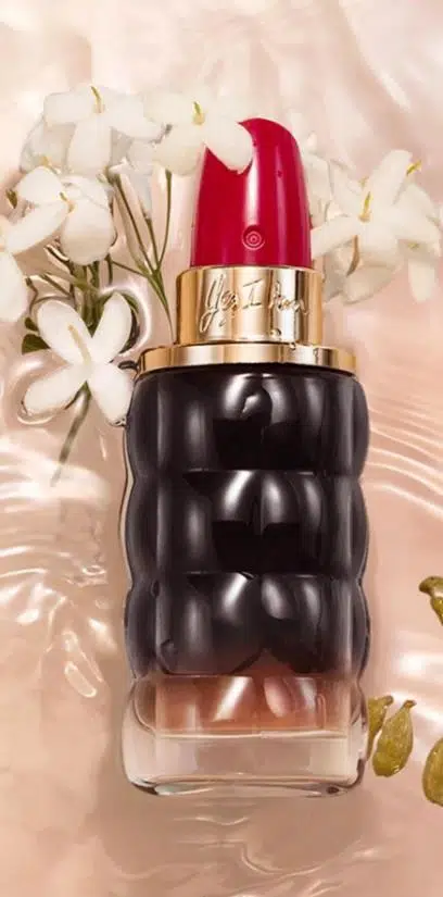 Şişesi, bir kadının en ikonik aksesuarı olan ruj şeklinde tasarlanmıştır.