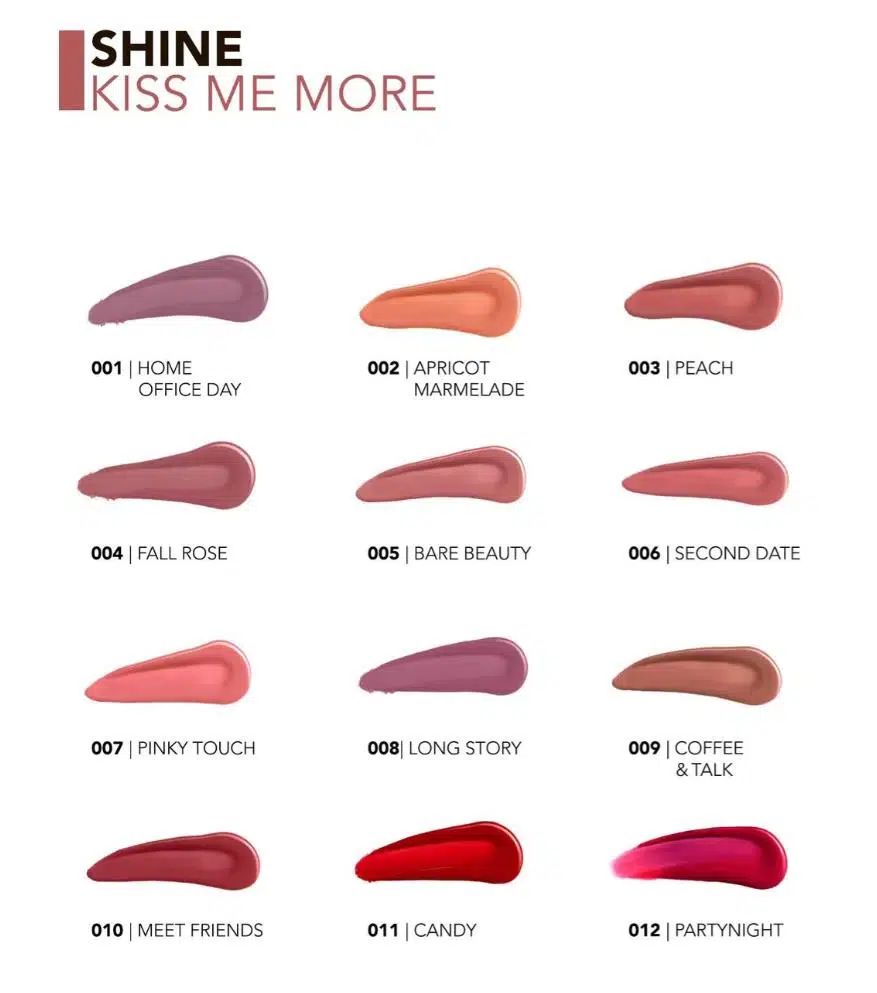 Flormar Shine Kiss Me More uzun süre kalıcı & parlak bitişli ruj, formülündeki murumuru yağı ve hyaluronik asitle dudaklara 24 saate varan yoğun nem desteği sunar. Kusursuz bir dudak makyajı görünümü yaratırken dudakların kurumasının, çatlamasının ve soyulmasının önüne geçer. Yoğun nemlendirici içeriği ve parlak bitişine rağmen dudaklarda yapışkan bir his oluşturmaz. Gün boyunca keyifli ve konforlu bir şekilde kullanılabilir. Yüksek örtücülüğü sayesinde dudaklara tek seferde yoğun renk kazandırır. Kremsi dokusu sayesinde dudaklar üzerinde rahat bir şekilde kayarak zahmetsizce kusursuz bir uygulama yapmayı sağlar.