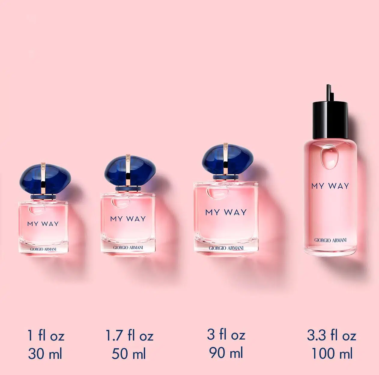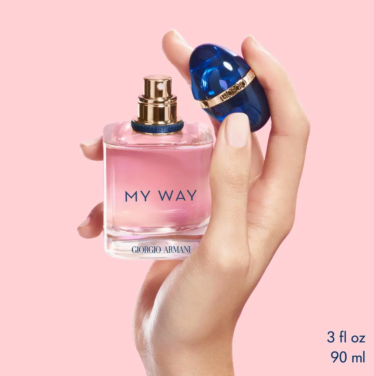My Way'in eşsiz dünyasını keşfedin. My Way, ufkunuzu genişletmeniz ve dünya çapında yeni deneyimler yaşamanız için bir davetiyedir. Baş döndüren beyaz çiçeklerden oluşan bir buket, dünya metaforu olarak yaratılmış tılsımlı bir şişede saklanmaktadır. My Way, ufkunuzu genişletmeniz için, sizi dünyanın herhangi bir yerinde denk gelebileceğiniz anlamlı deneyimlere çağıran bir kokudur. Açık fikirli, meraklı, doğayı hisseden ve hem kendini hem de dünyayı keşfetmeye hazır olan kadınların kokusudur. Mavi kapak, bir dünya metaforudur. Kapağın çevresindeki altın yüzük, kazanılan her deneyim tarafından aydınlatılan eşsiz bir serüvenin sembolüdür. Giorgio Armani imzasıyla damgalanmış altın yüzükle çevrili olan kapak, yaşanması gereken zarafet dolu dünyayı yansıtır. Bu eşsiz parfüm sürdürülebilirlik ilkesi ile uyumlu olacak şekilde yeniden doldurulabilir formatta üretilmiştir.