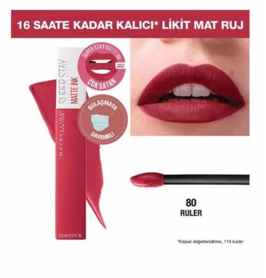 | Etiketler | Maybelline New York Likit Mat Ruj - SuperStay Matte Ink Liquid Lipstick 80 Ruler |