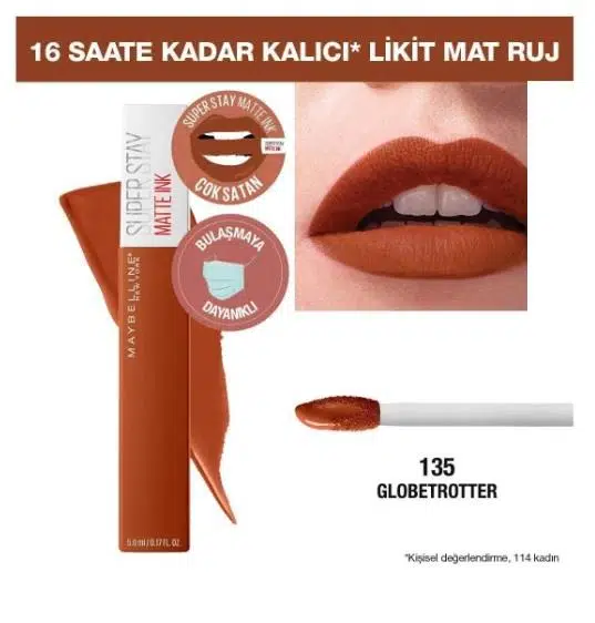 | Etiketler | Maybelline New York Super Stay Matte Ink City Edition Likit Mat Ruj - 135 Globe-trotter |
