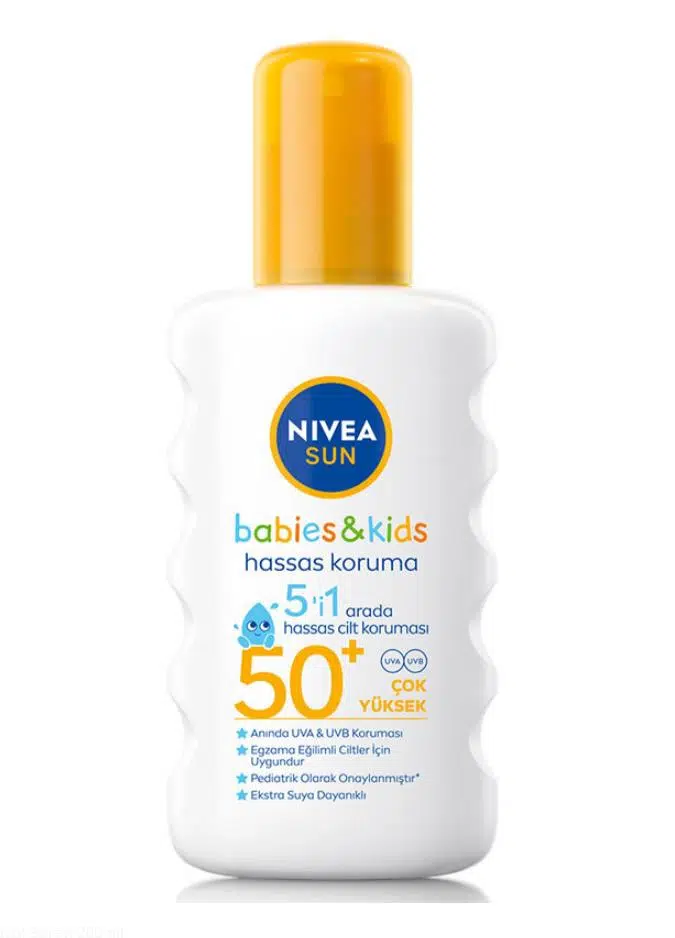 NIVEA SUN SPF50 Çocuklar İçin Hassas Güneş Koruyucu Vücut Spreyi 200ml: Bebek ve çocukların hassas cildi için geliştirilmiştir.