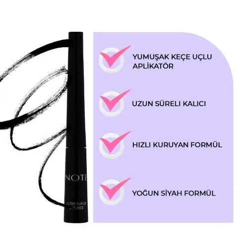 Note Ultra Black Dipliner — göz makyajınızı mükemmel bir şekilde tamamlamak için tasarlanmış, hızlı kuruyan ve uzun süre kalıcı bir üründür. Tatlı badem yağı ve E vitamini içeriği ile göz çevrenizi beslerken, yoğun siyah rengiyle dikkat çekici hatlar oluşturur.